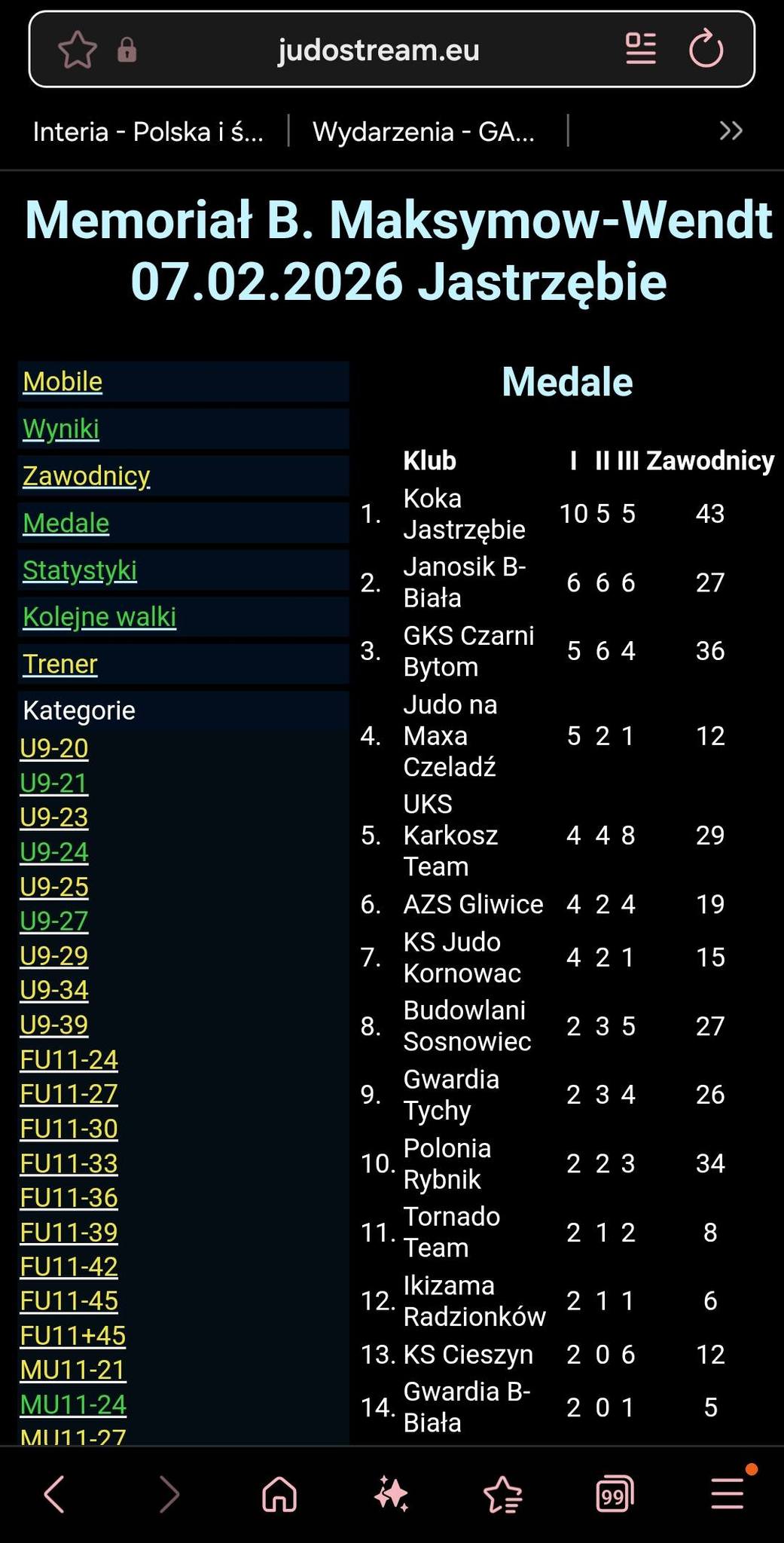 W sobotę 7 lutego w Jastrzębiu Zdroju odbył się II Memoriał Beaty Maksymow-Wendt. Dzięki tej imprezie postać naszej wspaniałej judoczki jest przywoływana i utrwalana w pamięci kolejnych adeptów judo. W tym roku zawody te zostały zorganizowane w kategoriach wiekowych U15, U13, U11 i U9. W zawodach łącznie wystąpiło 551 uczestników reprezentujących 45 klubów.